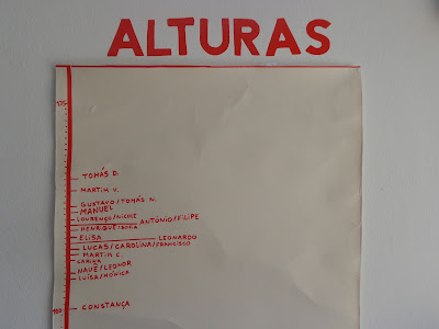 Descobrimos que a Constança é a criança mais baixa e o Tomás D. a criança mais alta...