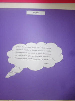 Assim, trabalhámos a noção de tempo e vimos as fotografias de como nós éramos em bebés... desenhámos como nós somos agora e conversámos como gostávamos de ser "Quando for crescido..."