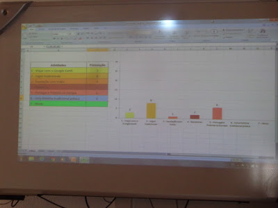 Fizemos um gráfico para descobrir qual a atividade mais votada e menos votada