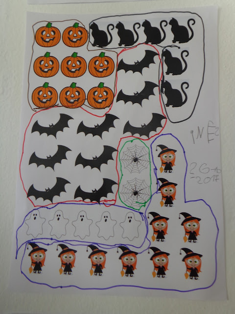 Hoje explorámos conjuntos... tinhamos gatos pretos... abóboras... e muitas coisinhas alusivas a esta temática... depois escolhemos uma cor e tentámos agrupar todos os gatos apenas num conjunto
