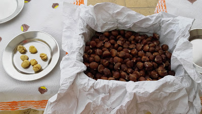 À tarde, voltámos a comer castanhas... e tentámos ser nós a tirar a casca