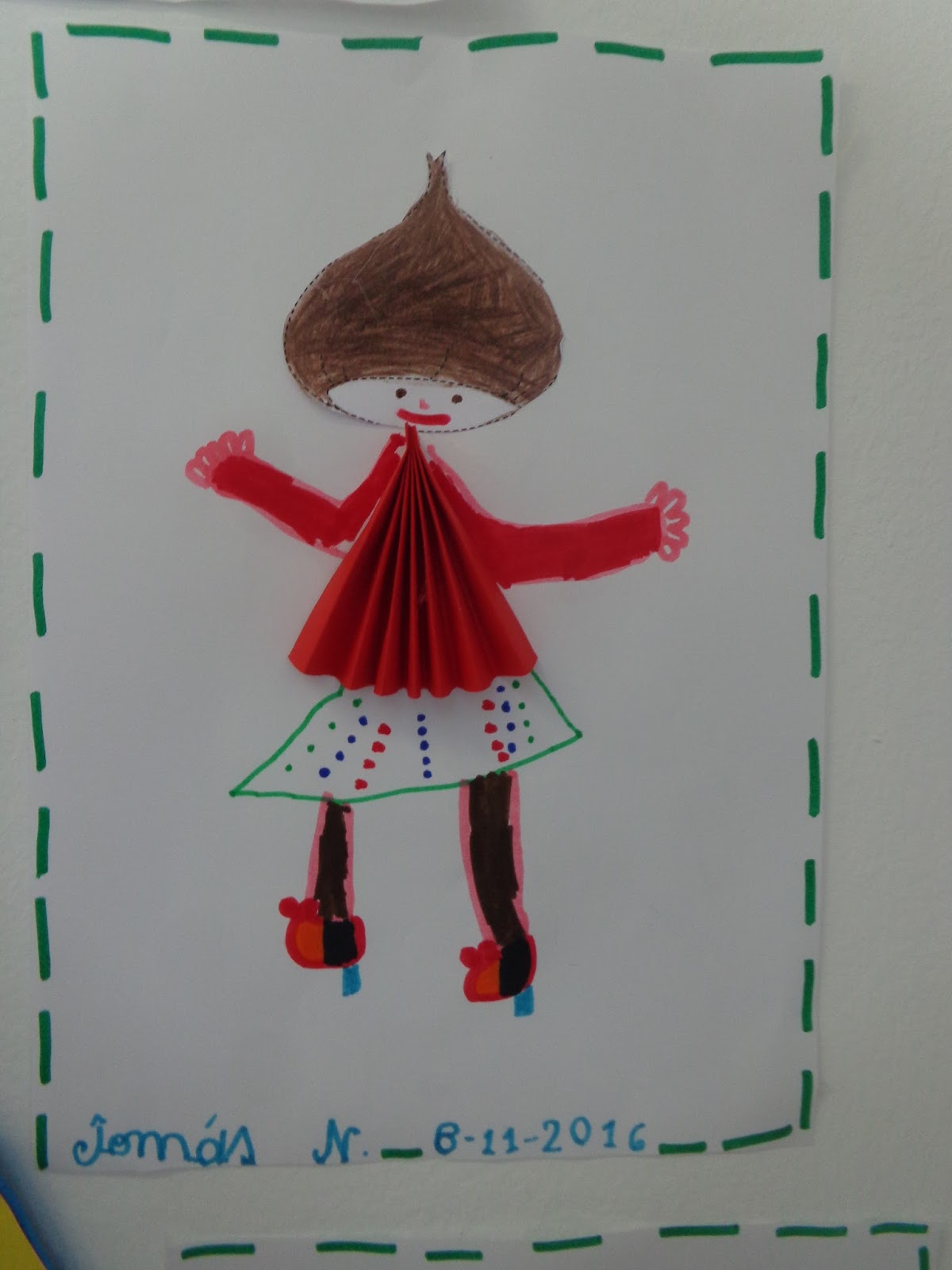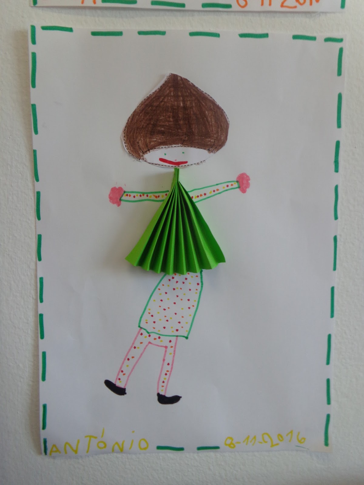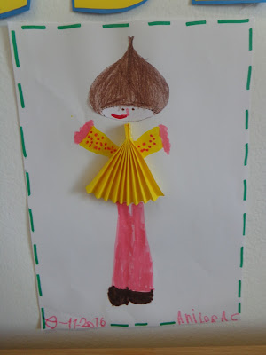 Depois colámos a castanha e a blusa ou vestido consoante o que cada criança escolheu...